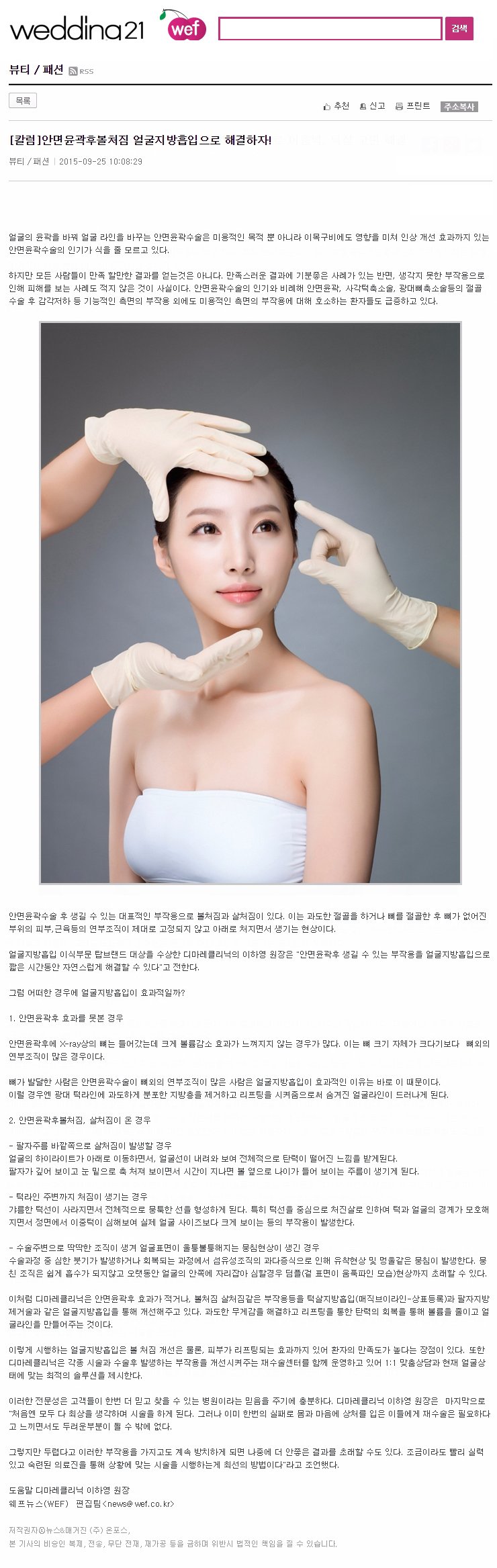 디마레클리닉 안면윤곽후볼처짐 기사안내