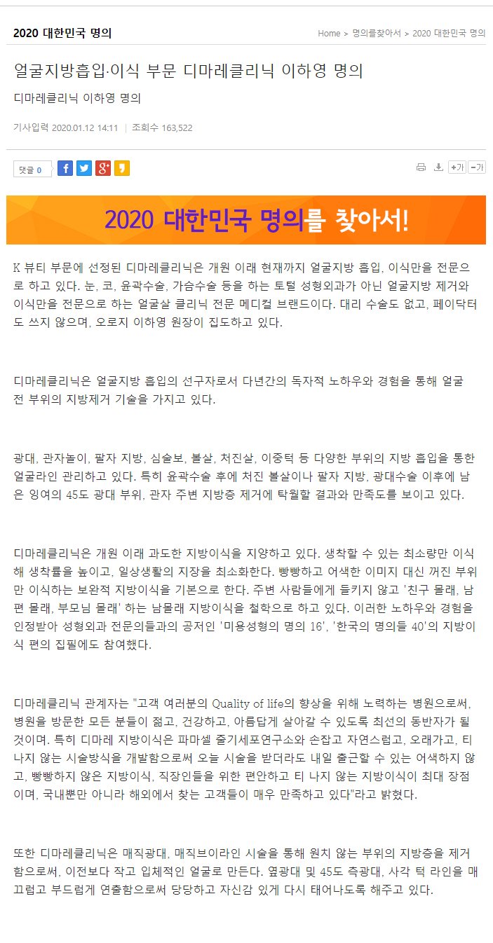 디마레 클리닉 이하영 원장님이 선정되어